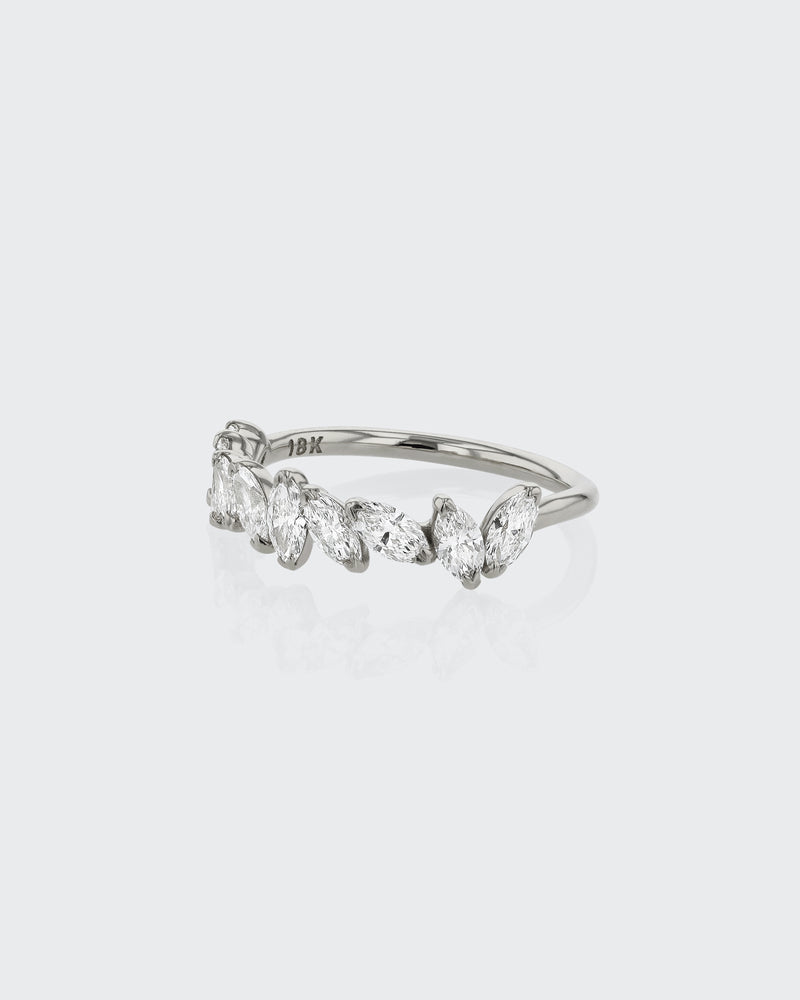Sarah & Sebastian creative director Sarah Gittoes was inspired by endless love when she crafted the Half Endless Marquise Diamond Ring. An unconventional engagement ring or simply a piece to wear and treasure forever, this ring features a cluster of marquise cut diamonds claw set, halfway around on a 18-karat gold band.