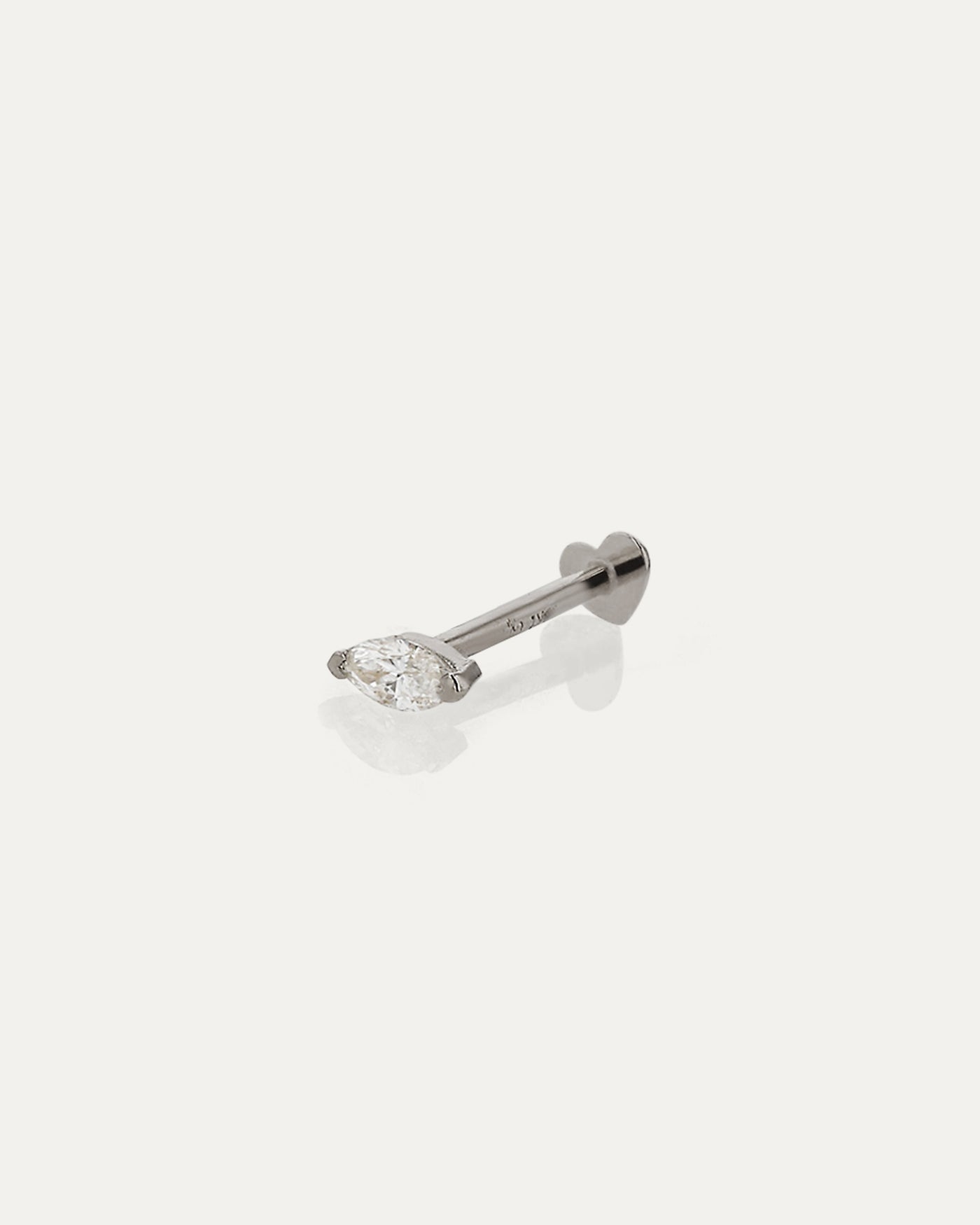 A delicate fine stud, the Marquise Cartilage Earring features a petite marquise cut diamond set in a sleek arrow claw setting. Crafted in platinum, this style is only available to purchase as a single piece and is suitable for initial piercings.