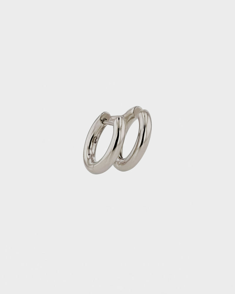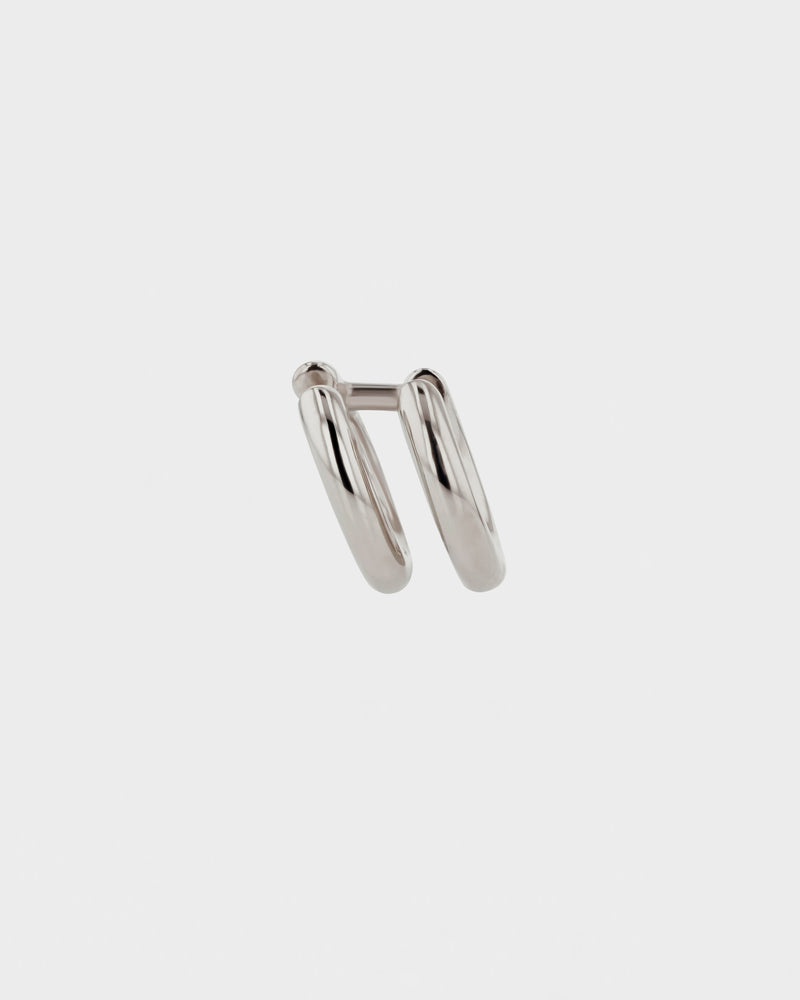 A sleek iteration of our Double Ouroboros Hoop, the Double Tube Hoop features a unique titled design that follows the contours of the ear. The first hoop in this duo hooks into a single piercing, whilst the second hoop sits as a cuff, creating the illusion of a double hoop. Refined in polished 18-karat white gold, this piece is designed to build a maximalist Ear Alchemy™, layered with other hoops, studs and cartilage earrings from the SARAH & SEBASTIAN collection.