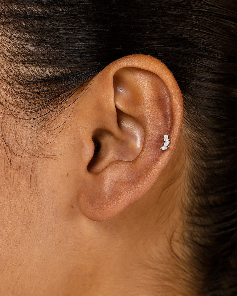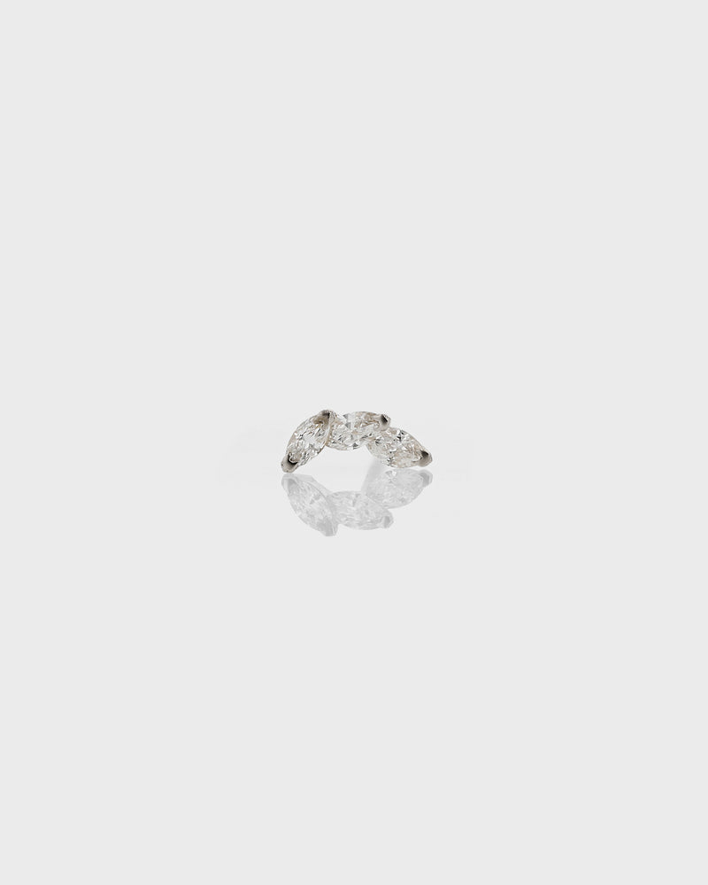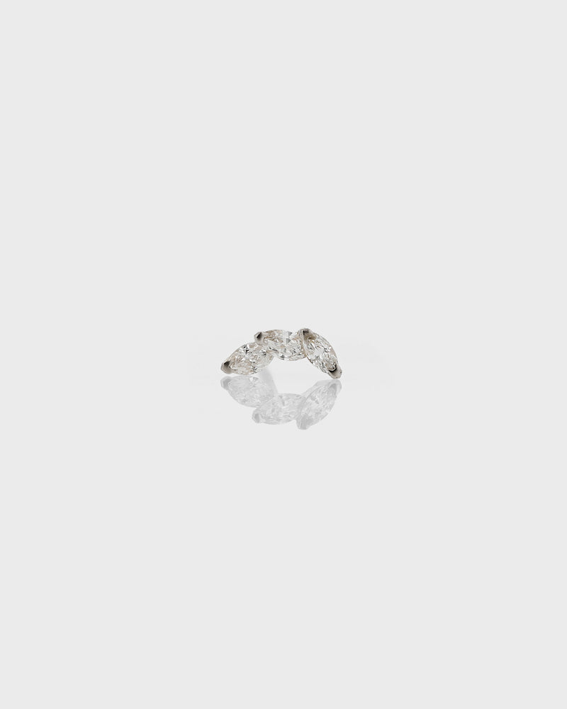Featuring a cascading three-tiered design, the Marquise Overlay Cartilage Earring features three petite marquise cut diamonds set in a layered curve. Refined and considered, this piece will add a touch of brilliance to your everyday Ear Alchemy. Crafted in platinum, this style is available to purchase as a single piece, left ear or right ear, and is suitable for initial piercings.
