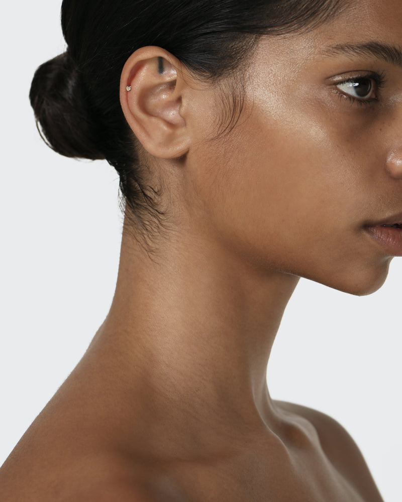 Wear your heart on your sleeve with our oh-so-discrete Tiny Heart Cartilage Earring. The perfect starting point for an ear adorned with jewellery, this piece works for lobe, daith, helix, conch, and other ear piercings, and is available for initial piercings at the Sarah & Sebastian Piercing Labs.