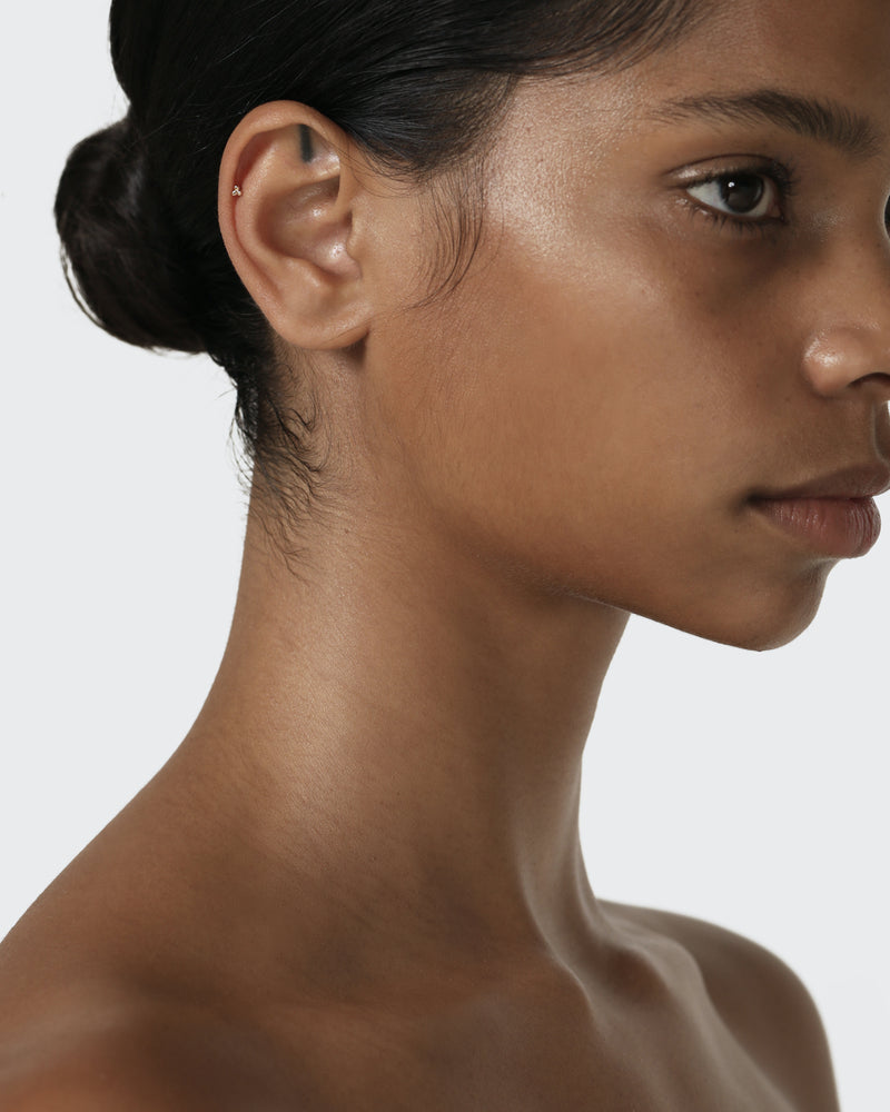 A signature Sarah & Sebastian design, the Trinity Cartilage Earring in 18-karat gold is our riff on the everyday stud, featuring three tiny circular balls that form an ornate triangle formation. Designed for the cartilage, this single stud can be worn anywhere in the ear from the helix to the conch.