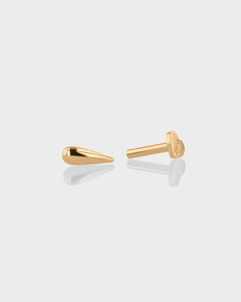 A delicate earring inspired by the strength and power of a whale fluke, the Baleen Cartilage Earring is a minimalist essential, featuring a sleek elongated pear-shaped front. Crafted in 18-karat yellow gold, this piece is specifically designed for cartilage piercings featuring an internally threaded post and our signature heart backing.