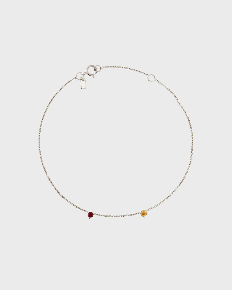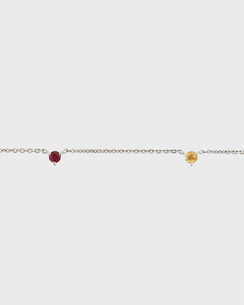 Each birthstone holds its own symbolism, opal radiating calm, amethyst igniting passion, sapphire embodying wisdom. The Birthstone Bracelet invites you to select up to five meaningful stones, each one delicately threaded along our signature fine chain.