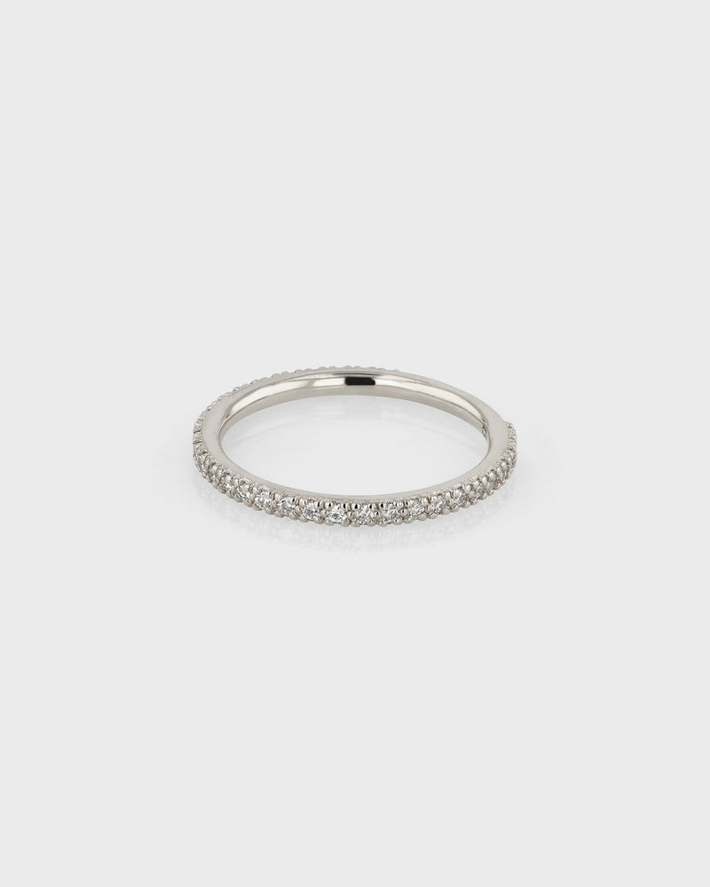 The perfect addition to your engagement stack, our Eternity Diamond Ring is available in 18-karat gold and features a delicate string of white diamonds claw set three quarters of the way around a 1.6mm band.
