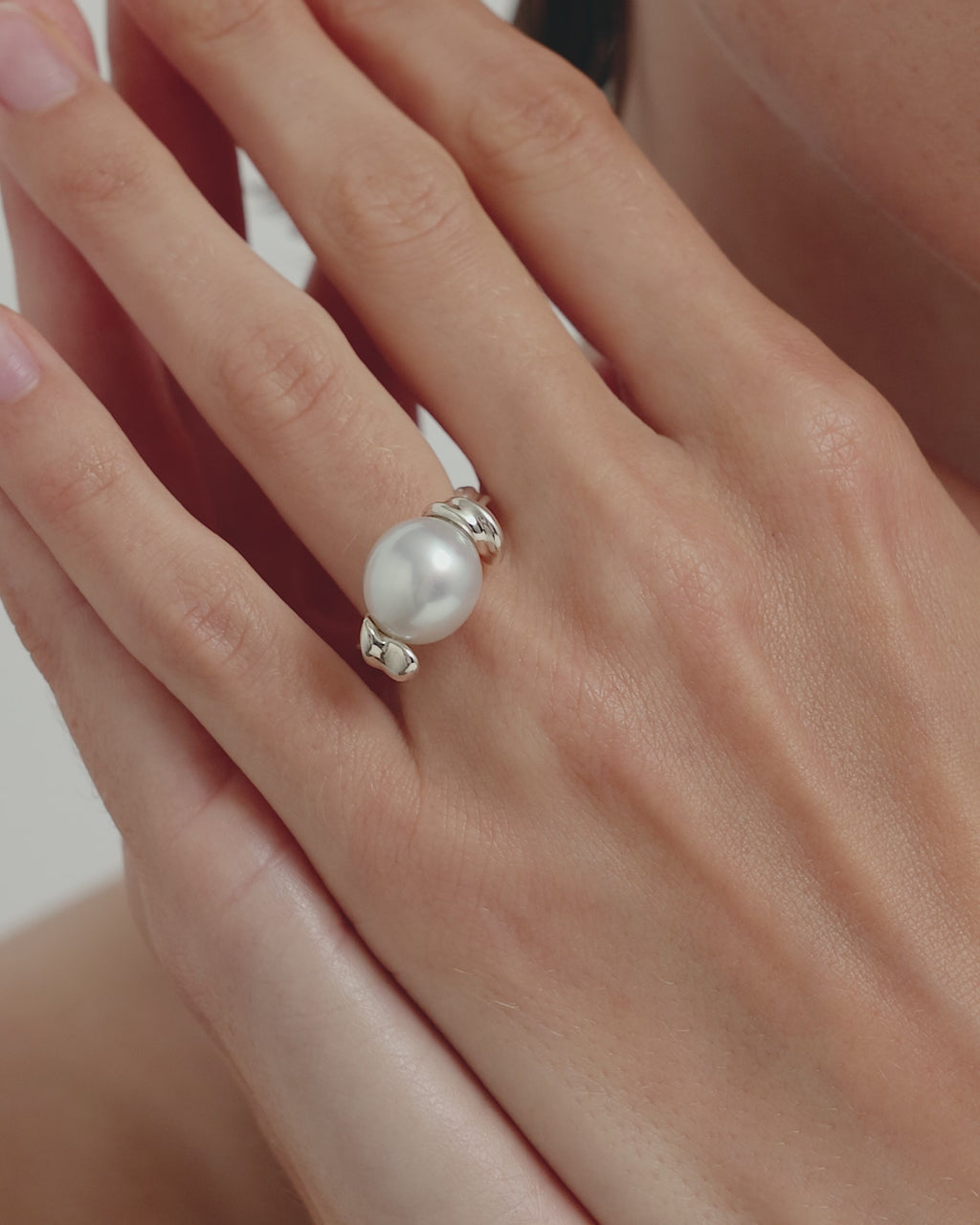 Crafted in sterling silver, the Hydra Ring is a breathtaking expression of fluid design. A unique South sea pearl is the focal point, showcasing its natural beauty, securely suspended above the band and encased by hidden pins. Individual pearls are hand-selected, chosen for their distinctive beauty and custom-fitted to the band. Due to the bespoke approach of the ring's construction, refer to the Ring Size Guide to find your best fit.