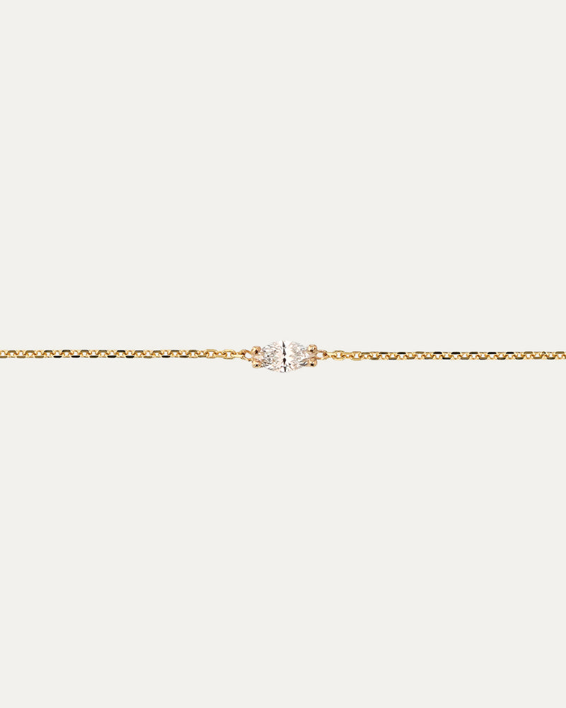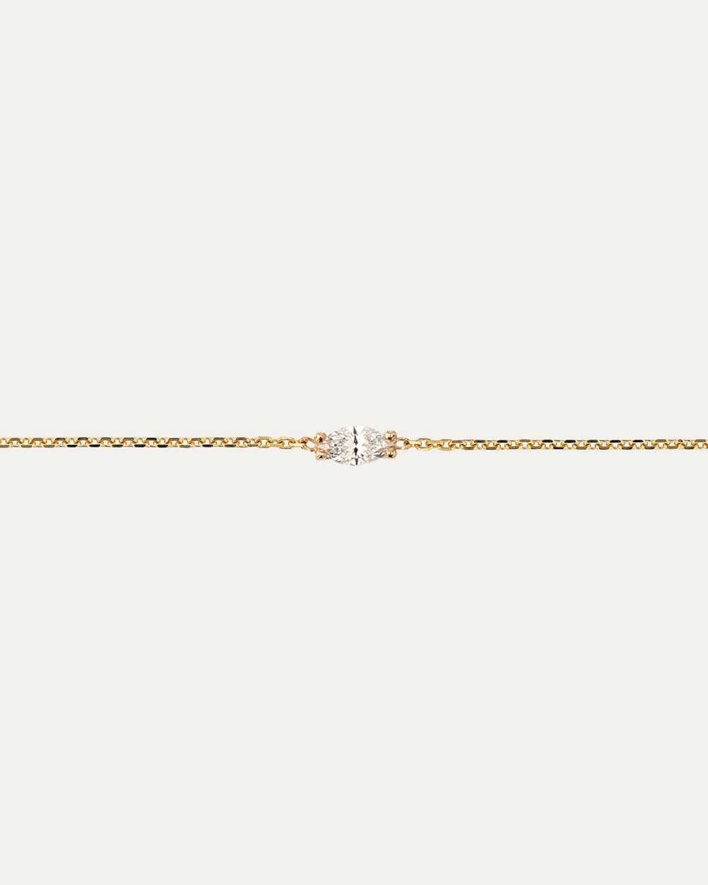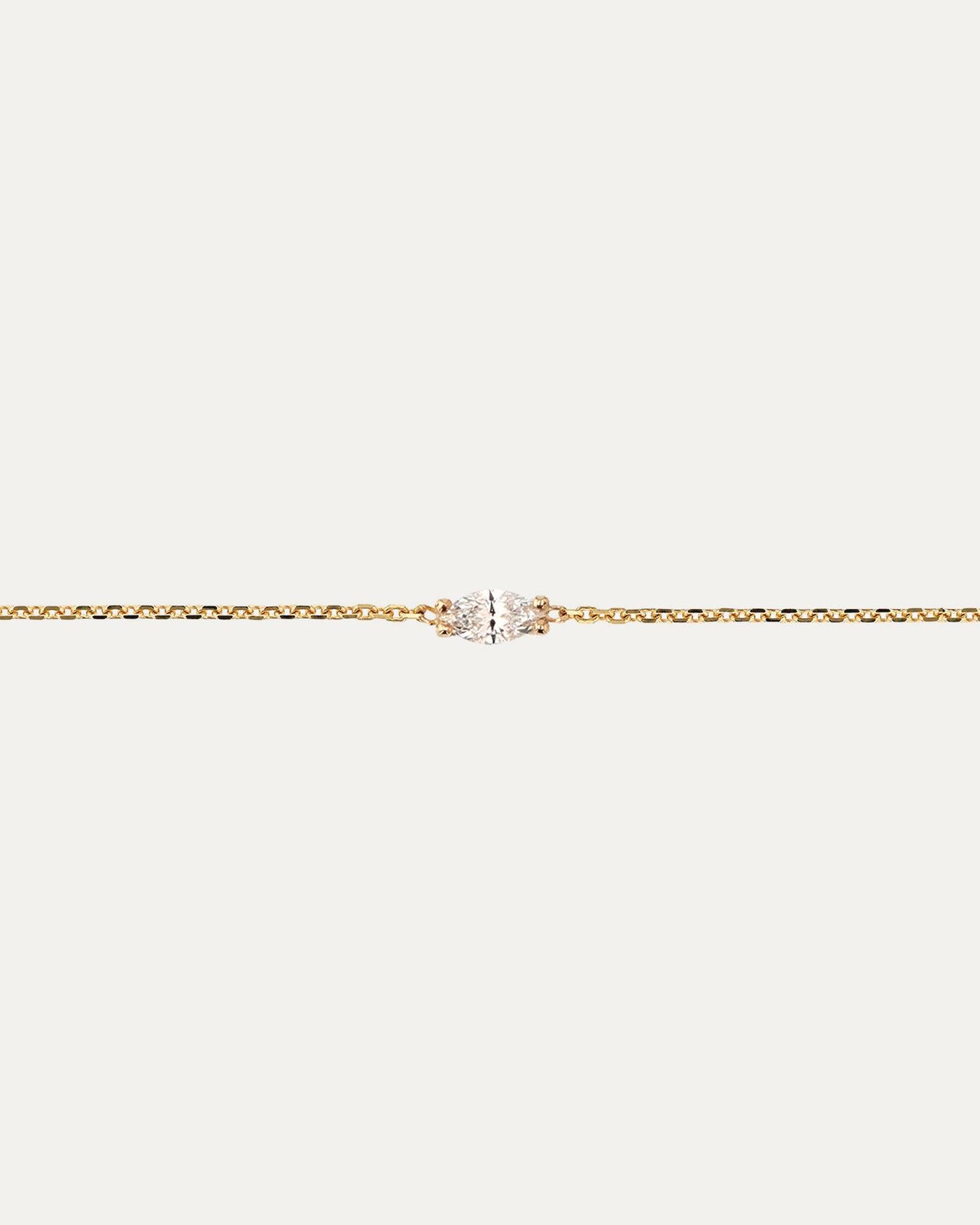 The Marquise Diamond Soldered Chain is a delicate piece featuring a fixed marquise white diamond set on our signature 18-karat yellow gold fine chain.