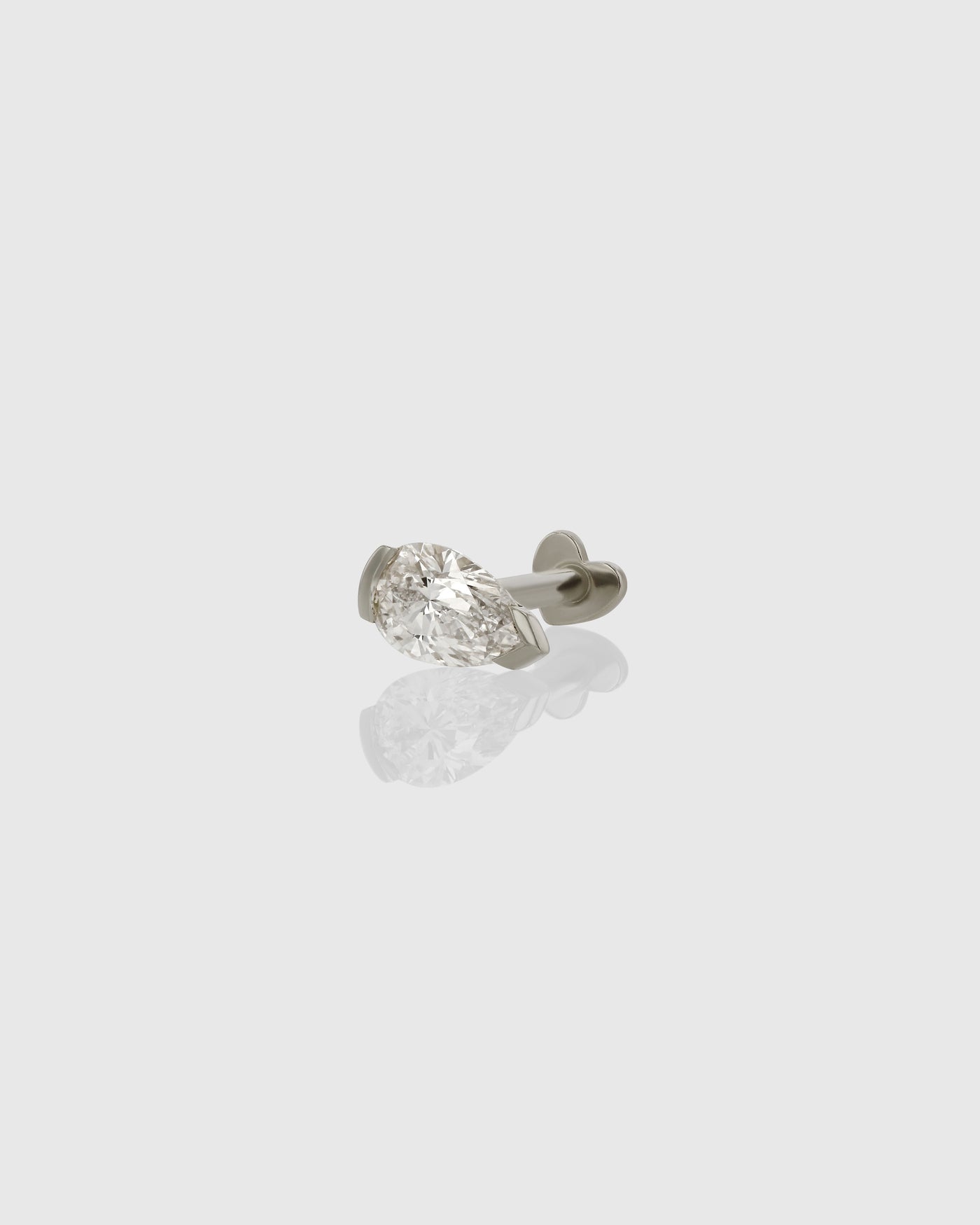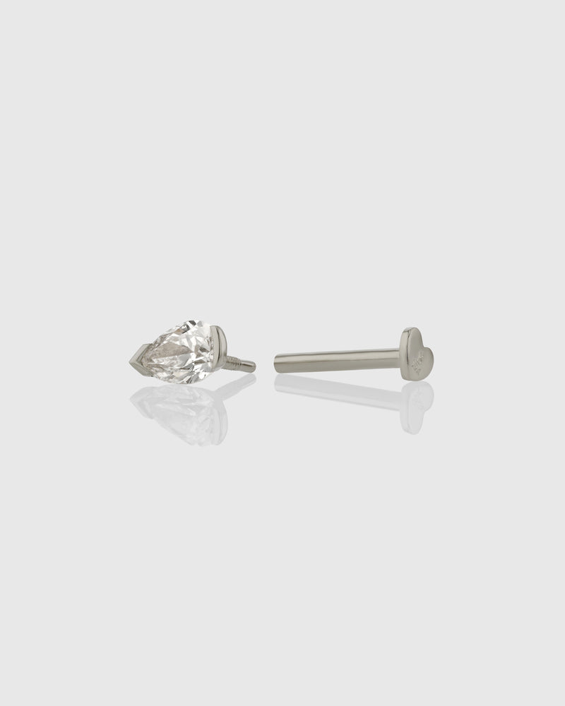 Build a brilliant Ear Alchemy with the Pear Suspense Cartilage Earring featuring an internally threaded post for smooth fit and comfort and our signature flat heart backing. Sold as a single piece, it heroes a 0.25-carat pear-cut natural diamond held in balance with our suspense-style setting.