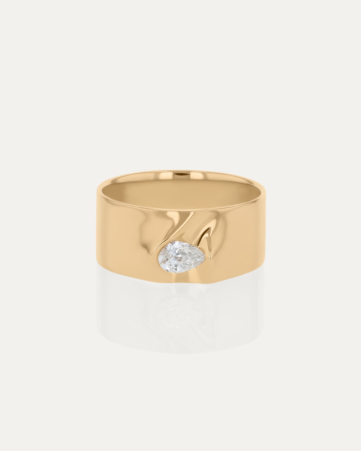Handcrafted in 18k yellow gold and set with a pear-cut white diamond of approximately 0.22–0.25 carats, secured in a tension setting that enhances its brilliance. Designed in our Sydney studio, it offers a refined expression of strength and light.