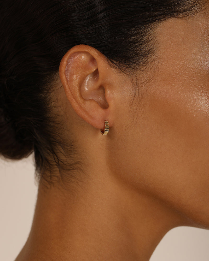 The Scale Hoop is a minimalist piece for bold Ear Alchemy styling. Crafted in 18-karat solid white gold, this piece is available in two sizes—8mm and 12mm. Sold as a single or pair, suitable for healed piercings only.