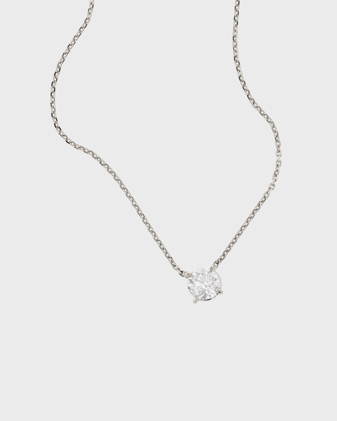 Our Solitaire Round Diamond Necklace is strung with a dainty round cut diamond. Cast from solid 18-karat gold, it's suspended from our signature bold chain. A piece so delicate it gives the appearance of ‘floating’ on the neckline, let this piece speak quiet volumes on its own, or layer it with other fine necklaces from your collection.