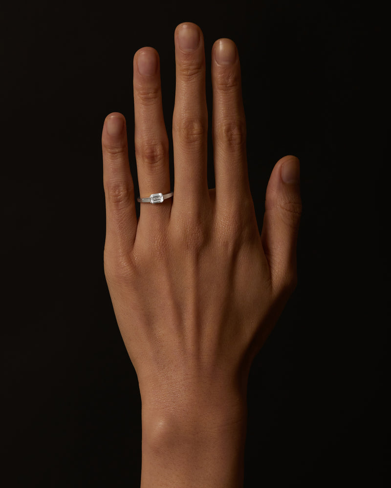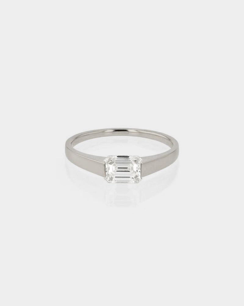 The SuspenseEmerald Ring takes its inspiration from a tension style setting, creating the illusion of a floating diamond, horizontally set on thick tapered band. Experiment with design details that make up a SARAH & SEBASTIAN Engagement Ring. Elements of this ring including band metal, carat and colour can be made bespoke as per your request.