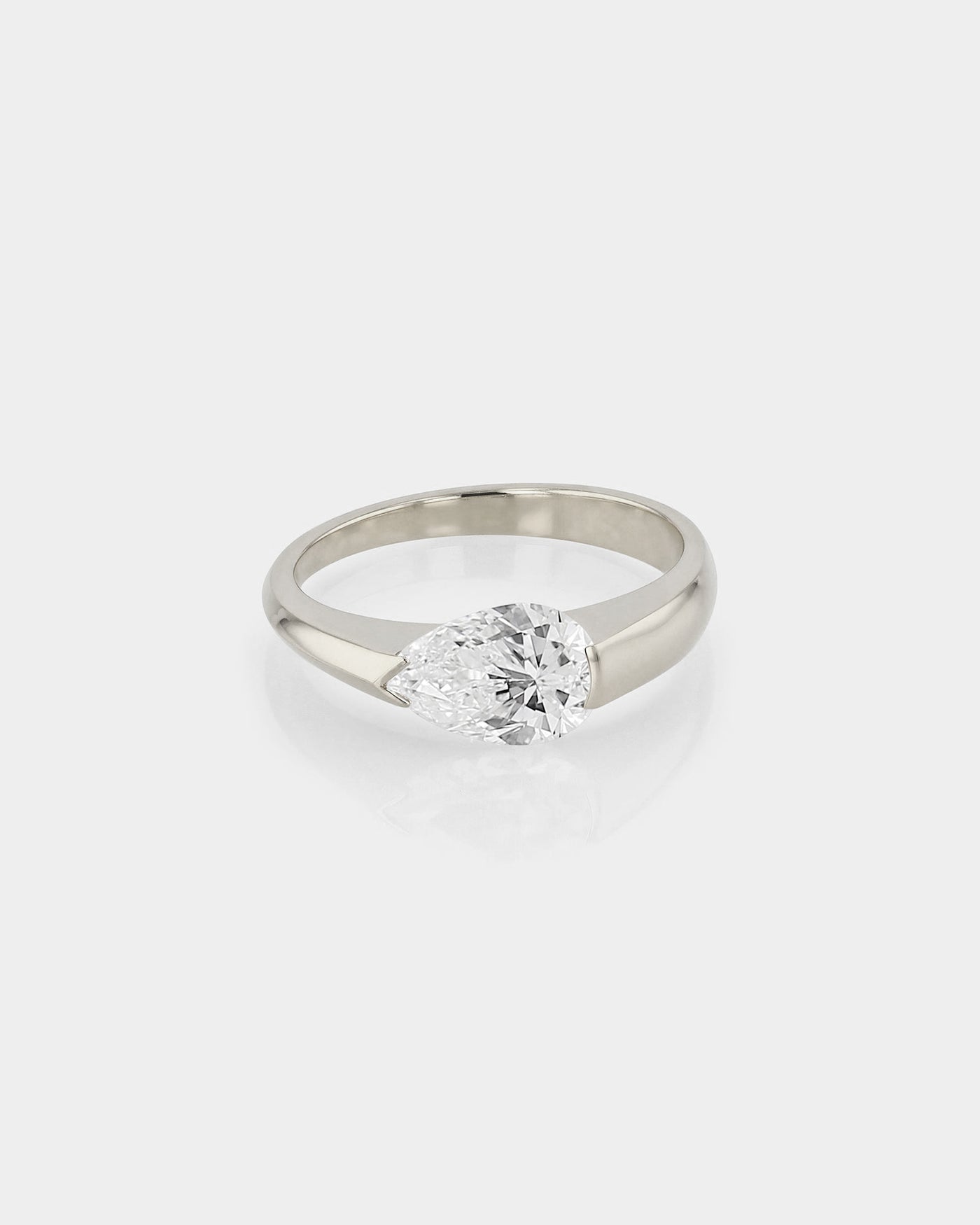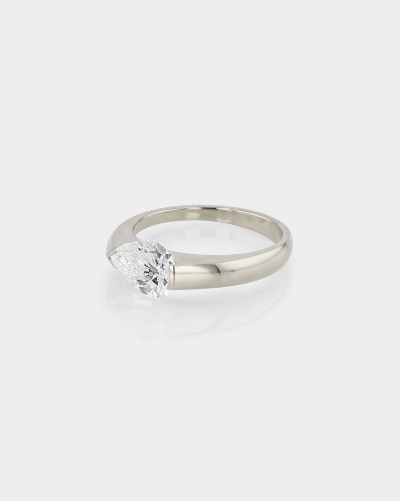 The Suspense Pear Ring takes its inspiration from a tension style setting, creating the illusion of a floating diamond, horizontally set on thick tapered band. Experiment with design details that make up a SARAH & SEBASTIAN Engagement Ring. Elements of this ring including band metal, carat and colour can be made bespoke as per your request.