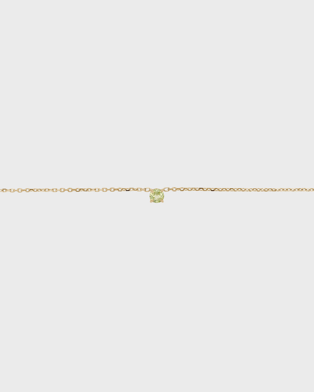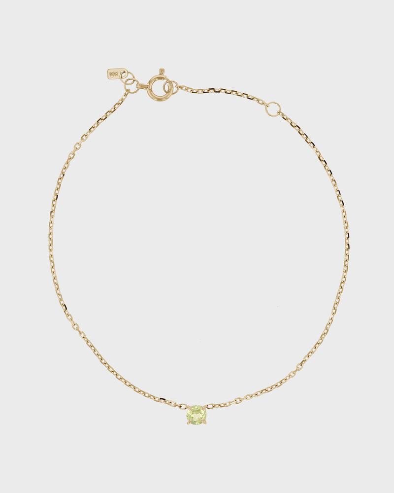 The Peridot Birthstone Bracelet is made in 18-karat gold and strung on our signature bold chain. Featuring precious gemstones corresponding to the month you were born. August's peridot has the symbolic meaning of wisdom & protection from evil.