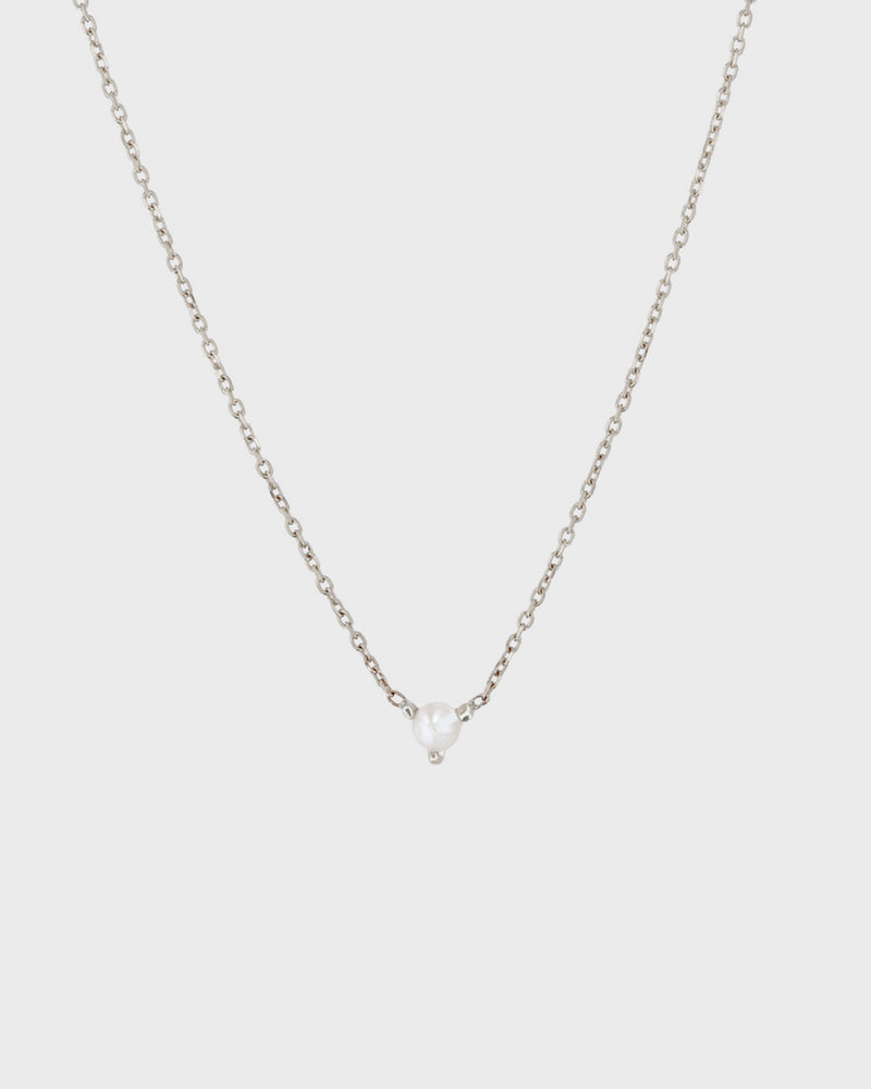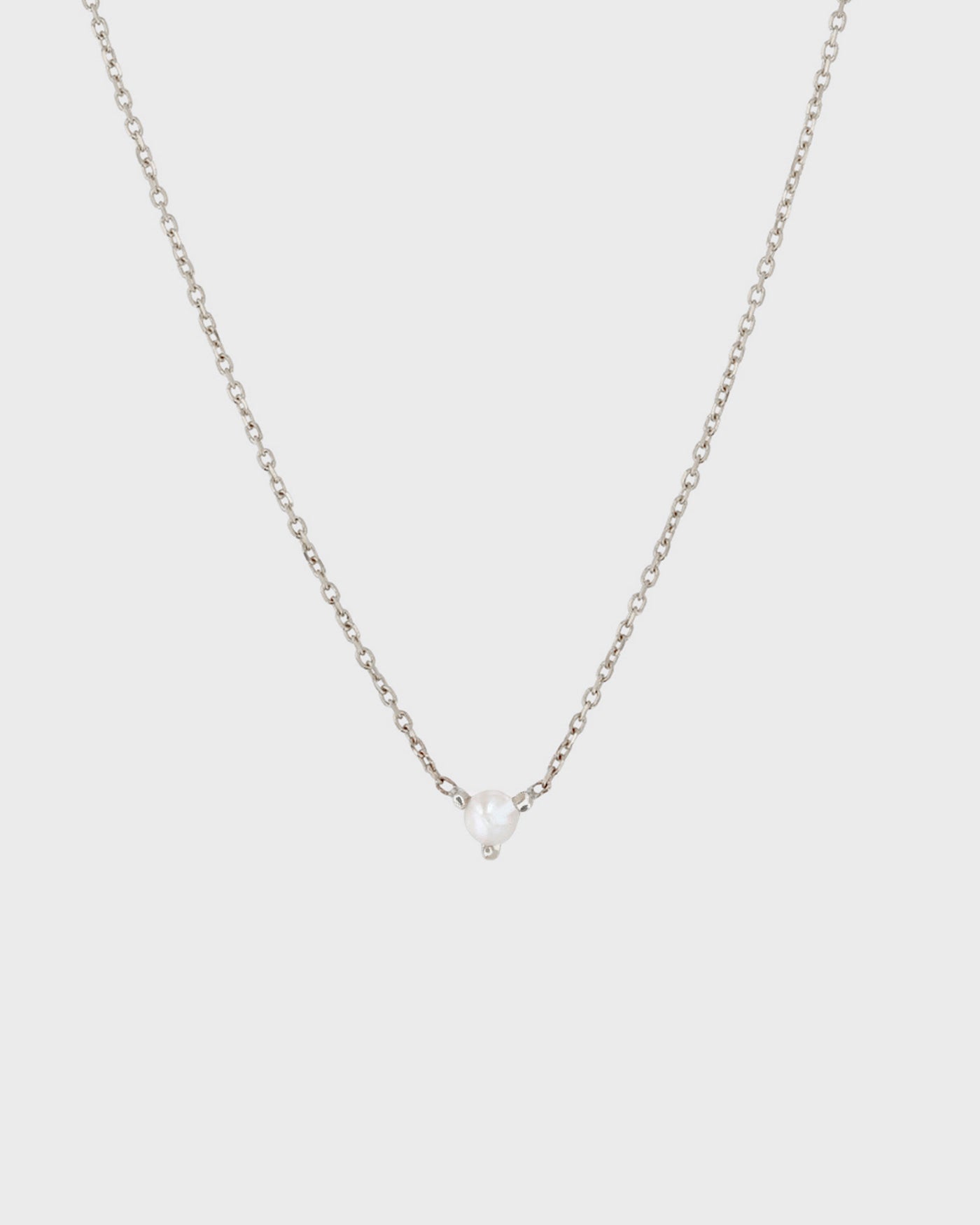 The Petite Pearl Birthstone Necklace is made in 14-karat gold and strung on our signature fine chain. Featuring precious gemstones corresponding to the month you were born. June's pearl has the symbolic meaning of purity & protection against nervous thoughts.