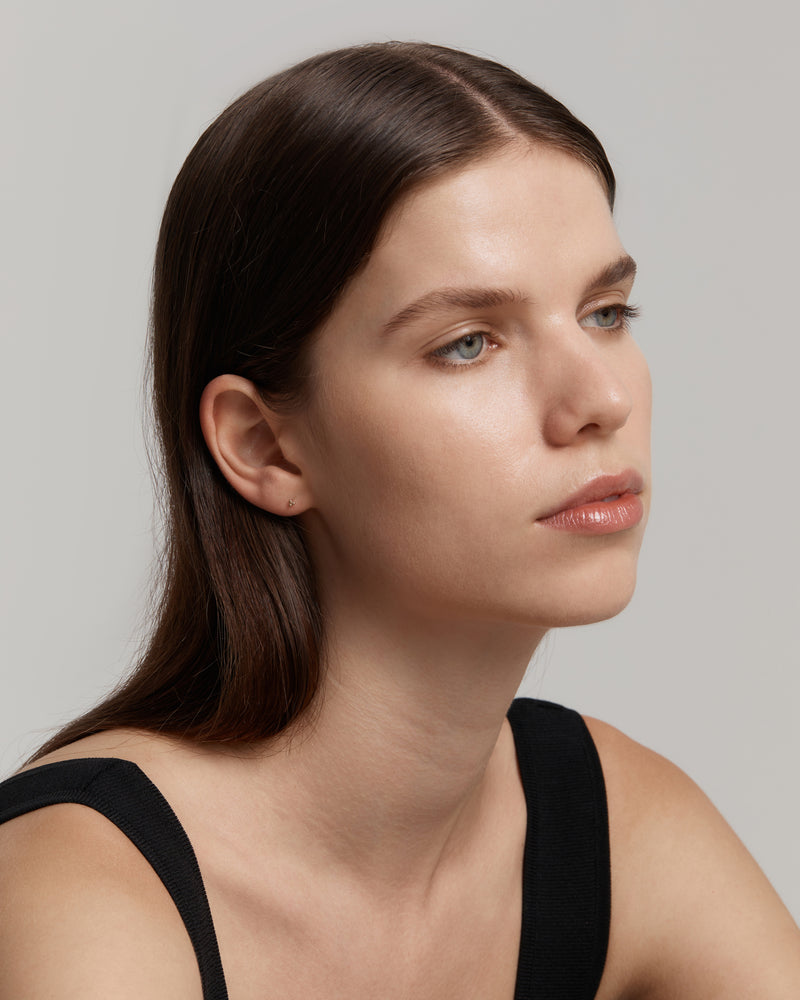Inspired by the ancient Vietnamese technique of melting together gold granules to create unique textures, the Trinity Earring is a signature Sarah & Sebastian piece featuring three golden spheres to form an ornate triangular motif. Bringing a new dimension to the everyday stud, this delicate style is crafted in 18-karat solid gold and designed to be layered long the ear lobe with other studs and cartilage earrings from the Sarah & Sebastian collection. Suitable for healed piercings only.