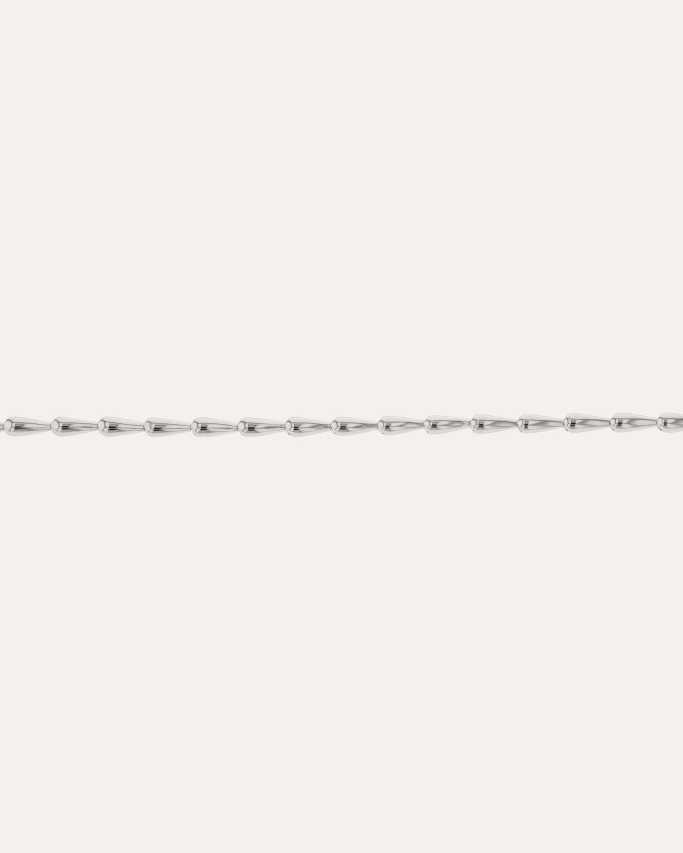 Handcrafted in sterling silver, the Baleen Chain Bracelet features handmade links that are invisibly riveted for a seamless drape. Designed for effortless layering, it can be worn alone for subtle impact or stacked for a bolder look.