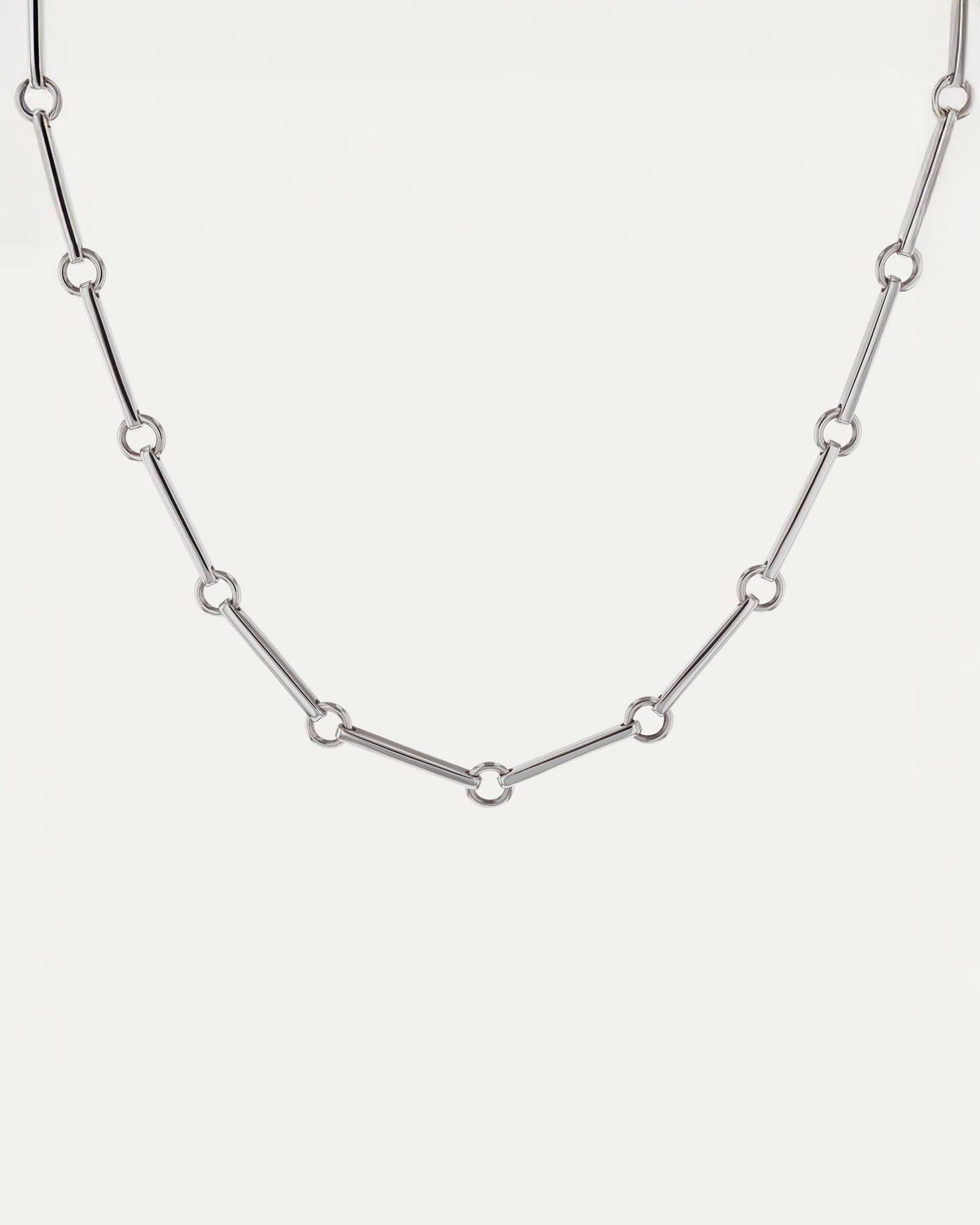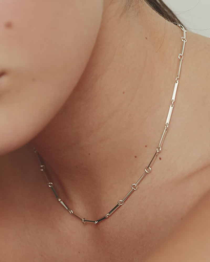 Handcrafted in sterling silver, the Bar Chain features clean contours and a considered silhouette. Designed for effortless layering, it transitions seamlessly from everyday wear to elevated styling.