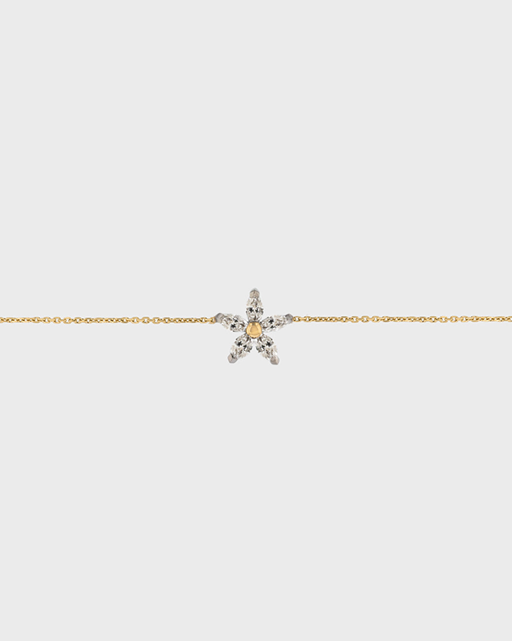Featuring a fixed daisy motif with marquise white diamonds, the Daisy Soldered Bracelet is a distinct nod to quintessential ‘90s daisy chains.