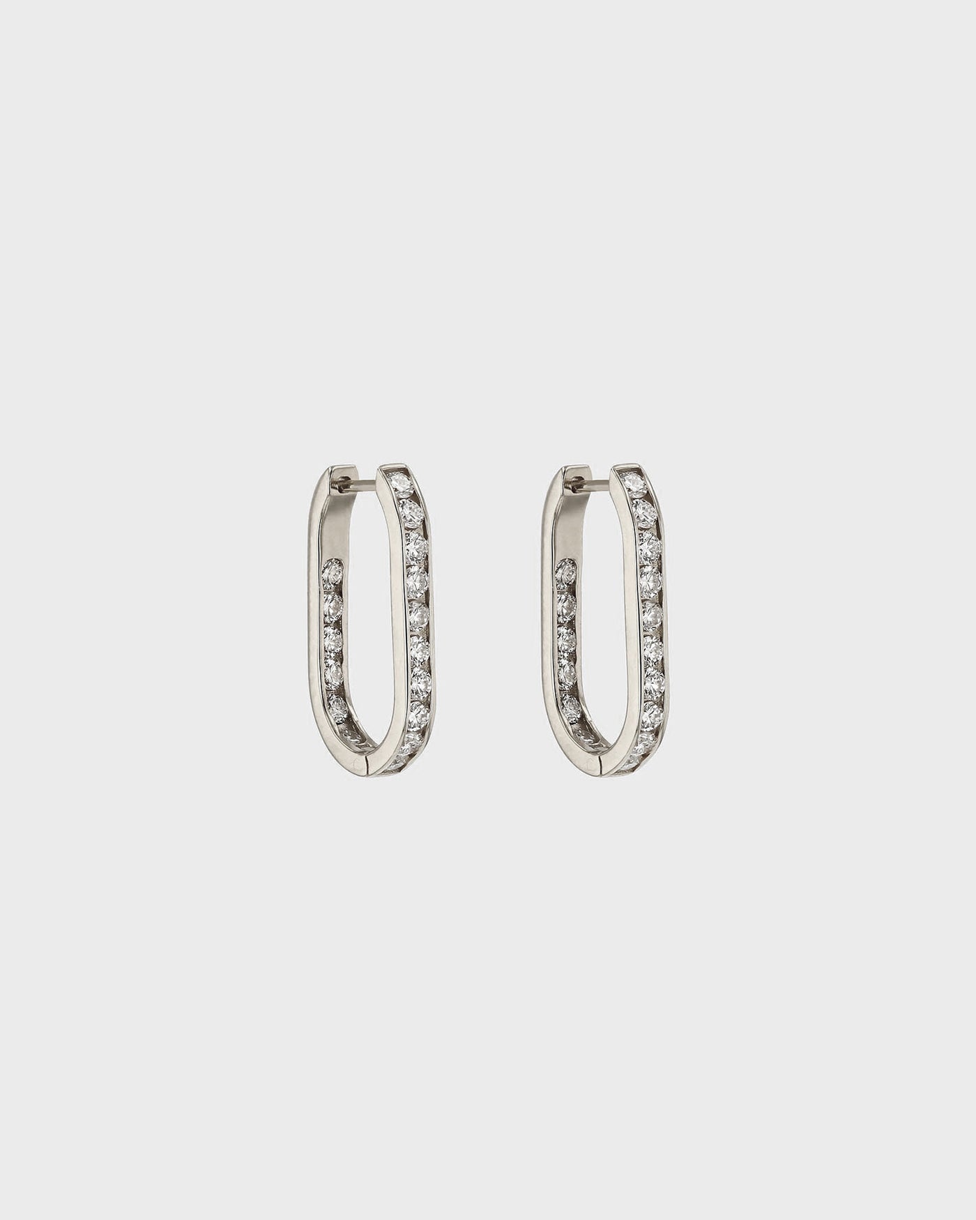 Our Diamond Channel Hoops are dazzling statement earrings, featuring 2mm white diamonds along thick white or yellow gold hoops. While all of Sarah & Sebastian’s earrings are designed with stacking in mind, the Diamond Channel Hoops make a bold statement all on their own.