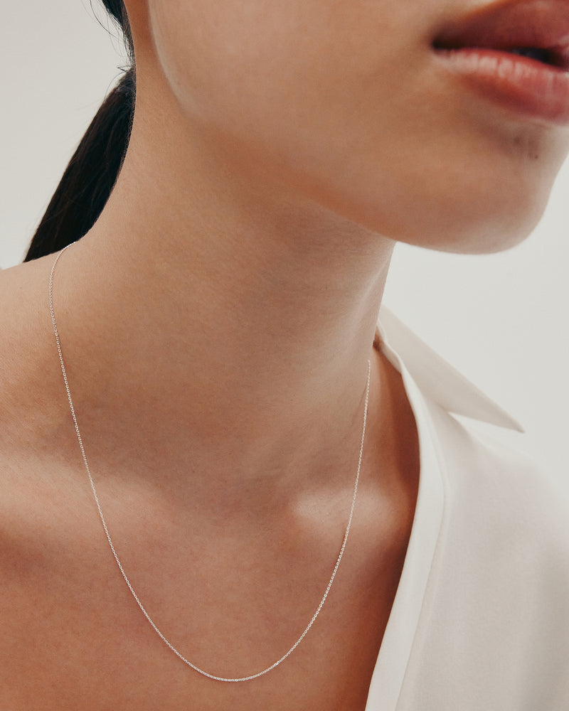 Our signature delicate fine chain in 18 karat gold is an ideal layering piece and easy addition to any jewellery collection. Layer this chain liberally with necklaces, pendants, and chokers of varying lengths—it’s sleek simplicity will immediately pull together any jewellery ‘stack’.