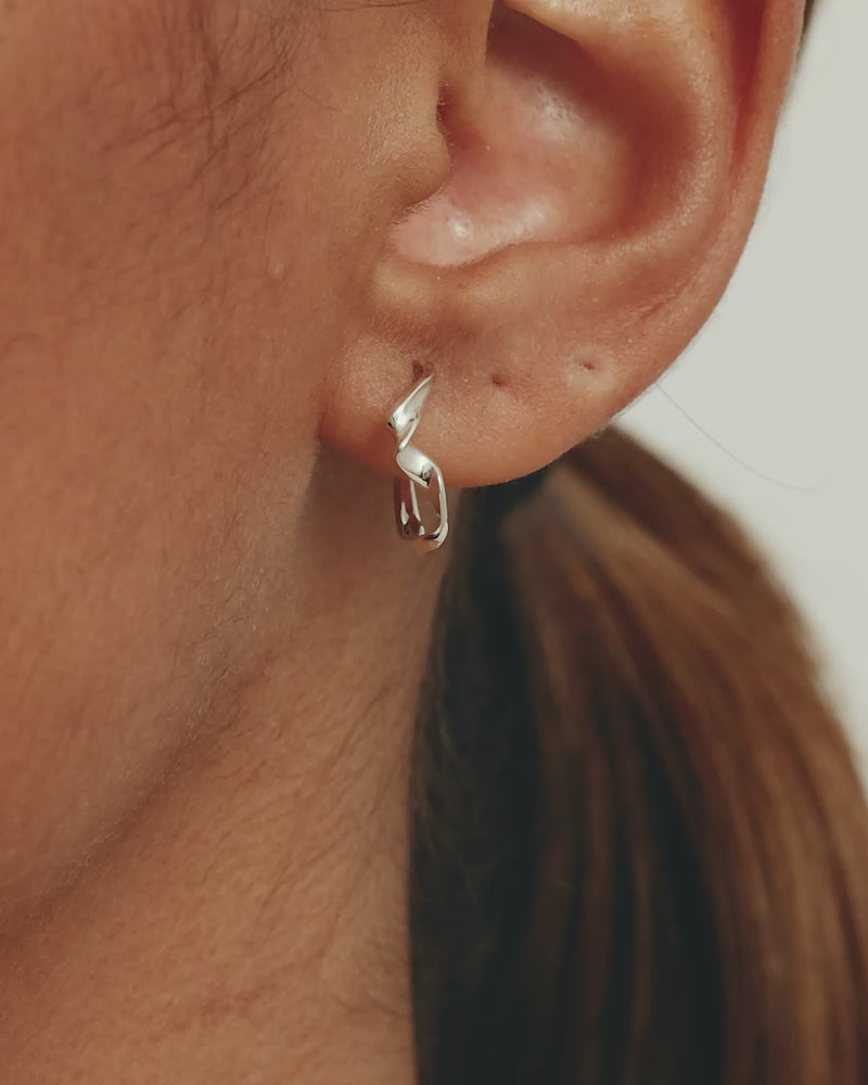 Handcrafted in sterling silver, the Fine Kelp Hoops are a mid-size silhouette with gentle curves that echo the ocean’s motion. Perfect worn alone or layered, they offer a considered balance of elegance and ease.
