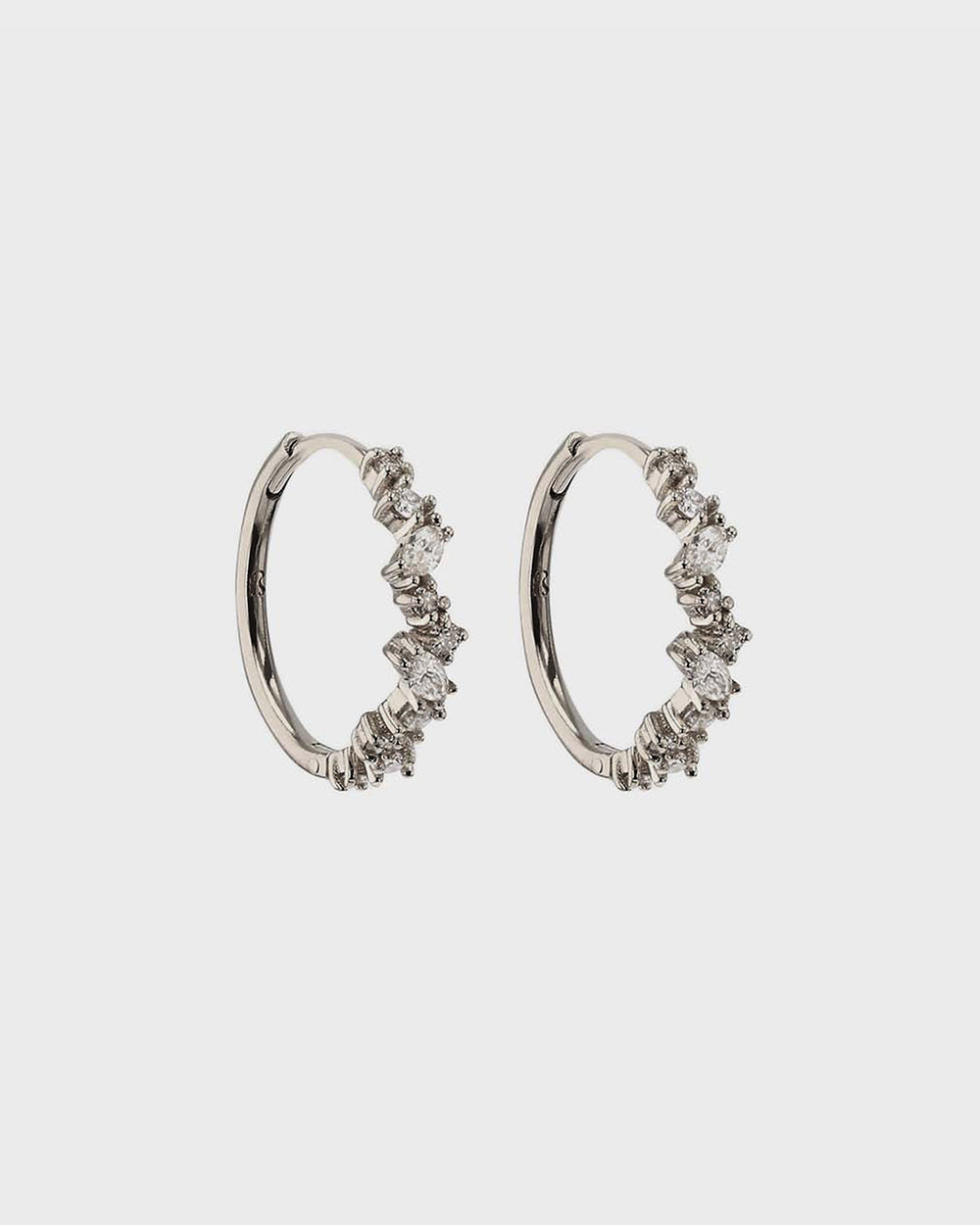 Hand-crafted in our Sydney studio from platinum, this circular hinged hoop is set with twenty marquise and round white diamonds in refined claw settings.