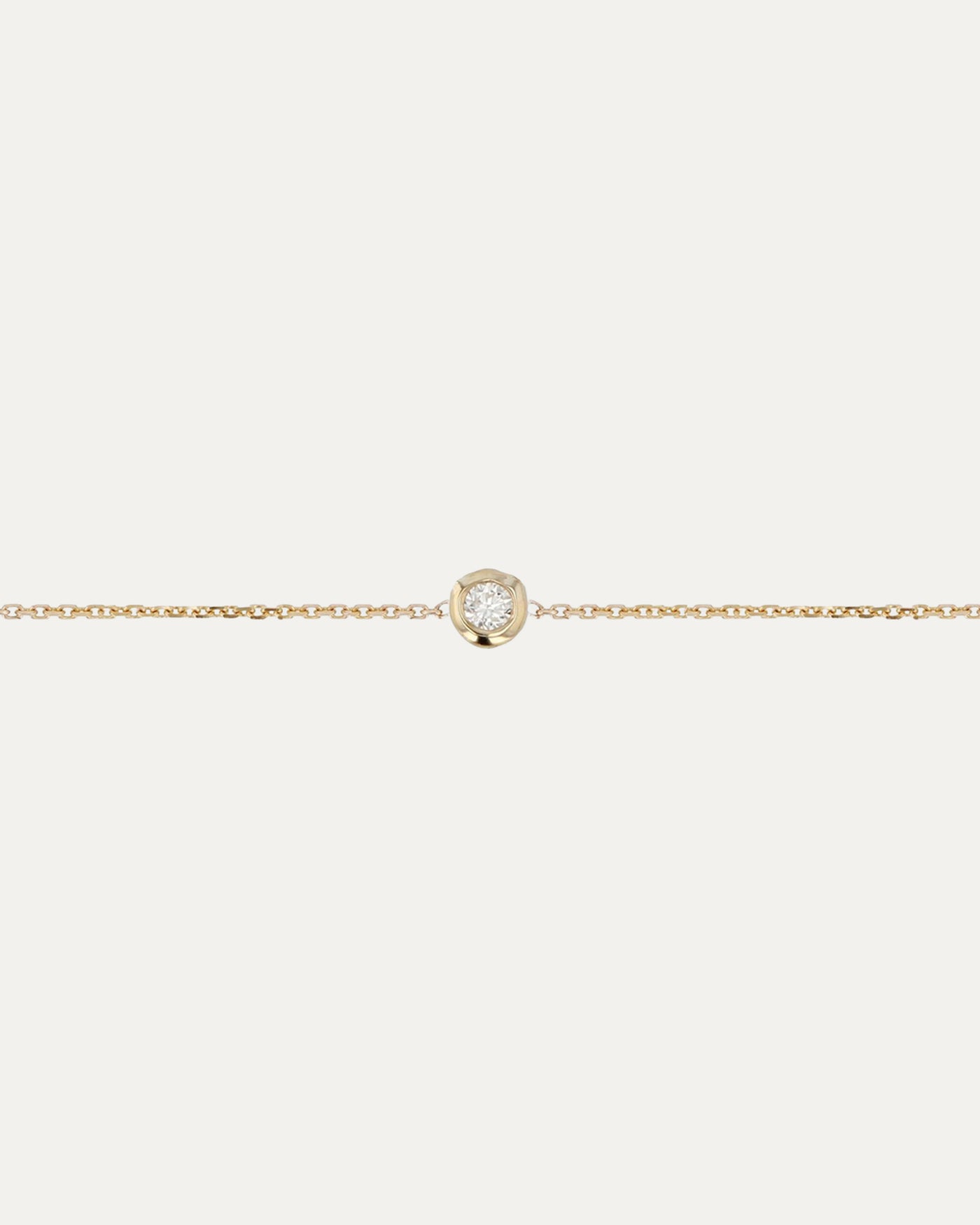 A timeless staple, the Lunette Bracelet features a single white diamond in a refined bezel setting, anchored to our signature fine chain.