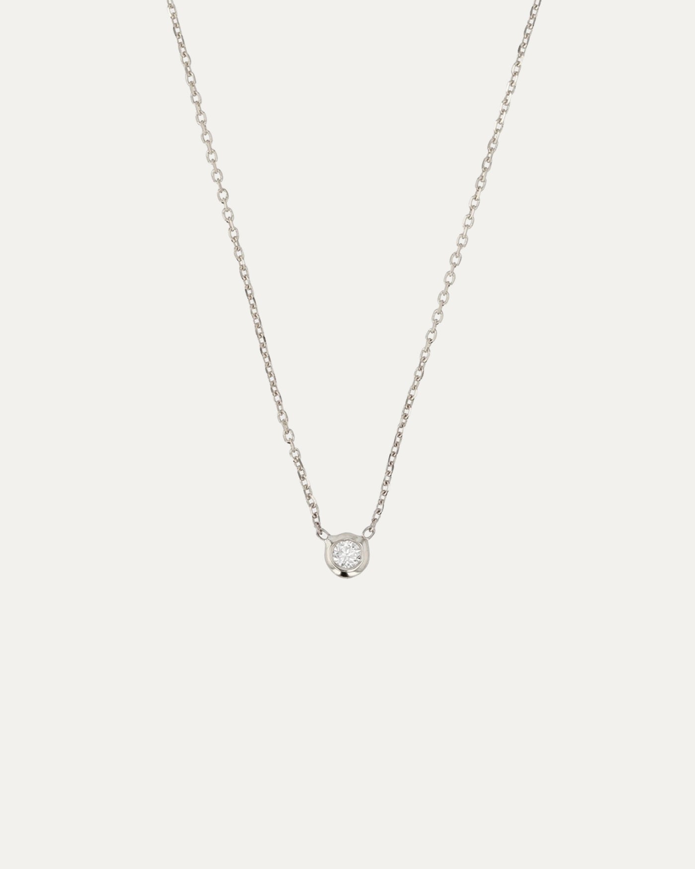 An understated staple, the Lunette Necklace is cast in 14-karat white gold and features a single white diamond in a classic bezel setting, fixed to our signature fine chain.