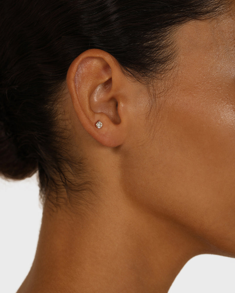 Build a brilliant Ear Alchemy with the Round Suspense Cartilage Earring featuring an internally threaded post for smooth fit and comfort and our signature flat heart backing. Sold as a single piece, it heroes a 0.25-carat round-cut natural diamond held in balance with our suspense-style setting.
