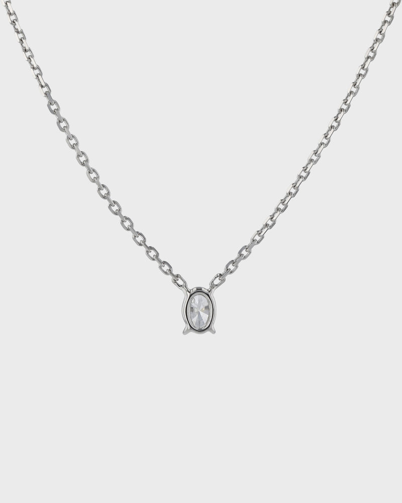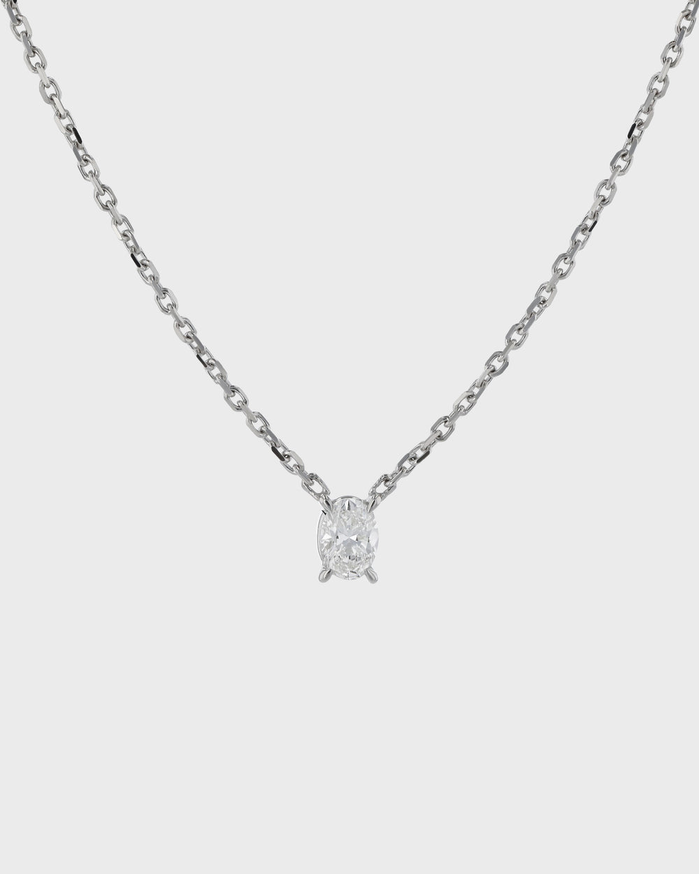 Our Solitaire Oval Diamond Necklace is strung with a dainty round cut diamond. Cast from solid 18-karat gold, it's suspended from our signature bold chain. A piece so delicate it gives the appearance of ‘floating’ on the neckline, let this piece speak quiet volumes on its own, or layer it with other fine necklaces from your collection.