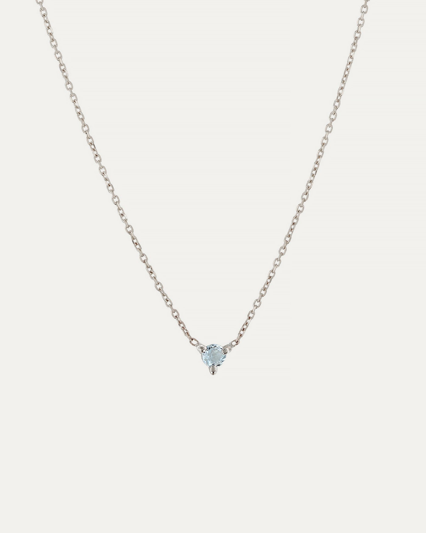 The Petite Aquamarine Birthstone Necklace is made in 14-karat gold and strung on our signature fine chain. Featuring precious gemstones corresponding to the month you were born. March's aquamarine has the symbolic meaning of creativity, health & overall happiness.