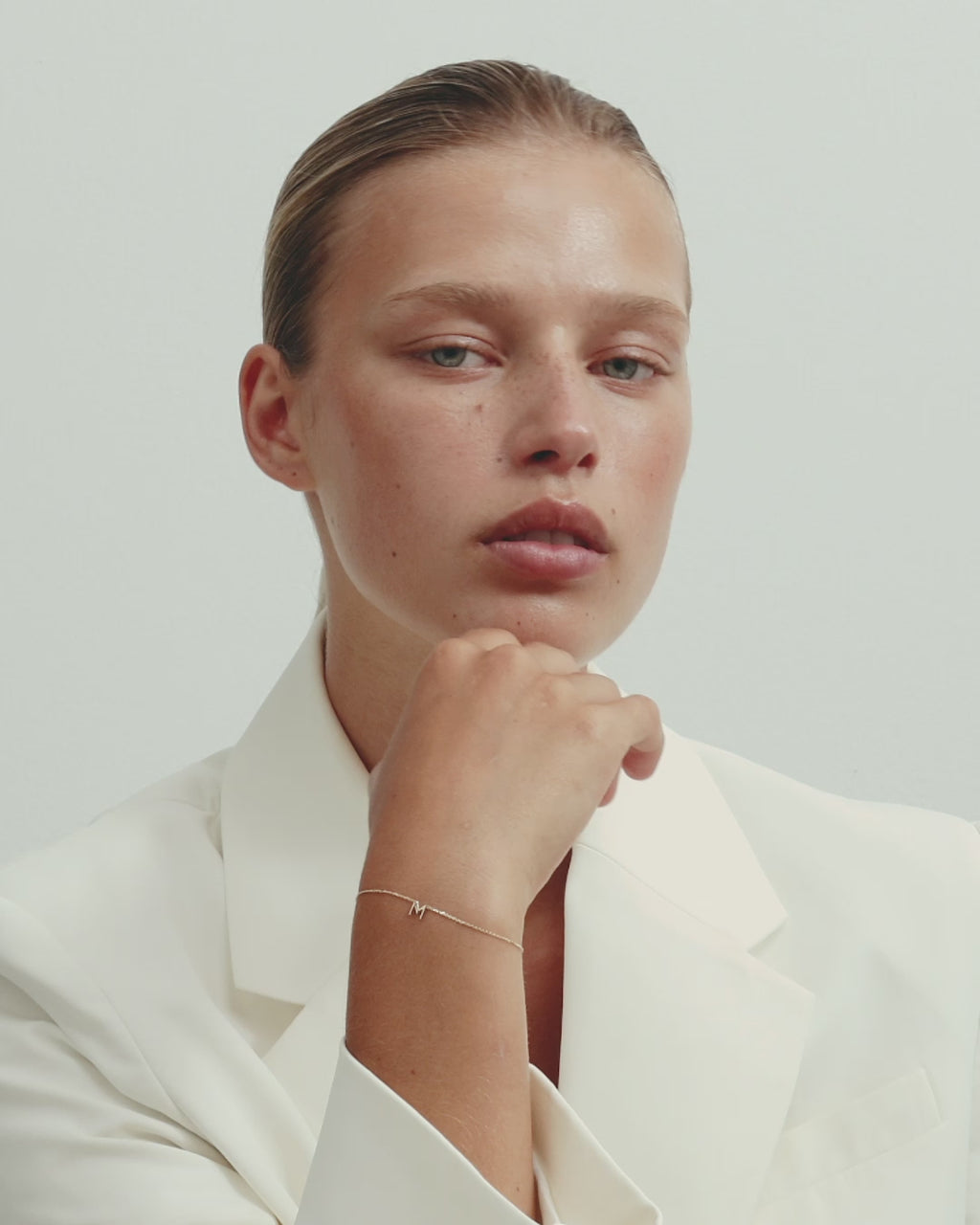 The Petite Letter Bracelet™ is a long-standing SARAH & SEBASTIAN favourite. Hand-crafted and designed in our Sydney studio in 14-karat yellow gold, our signature fine chain is strung with an uppercase letter of your choice.