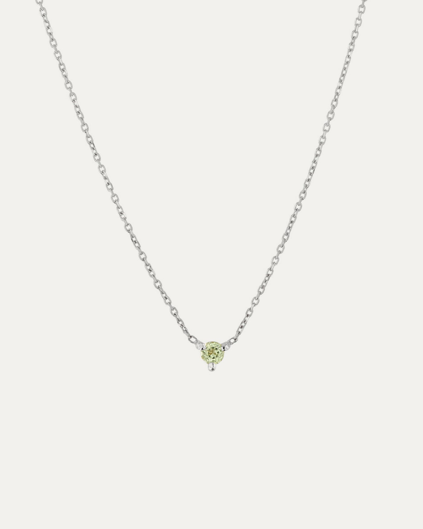 The Petite Peridot Birthstone Necklace is made in 14-karat gold and strung on our signature fine chain. Featuring precious gemstones corresponding to the month you were born. August's peridot has the symbolic meaning of wisdom & protection from evil.