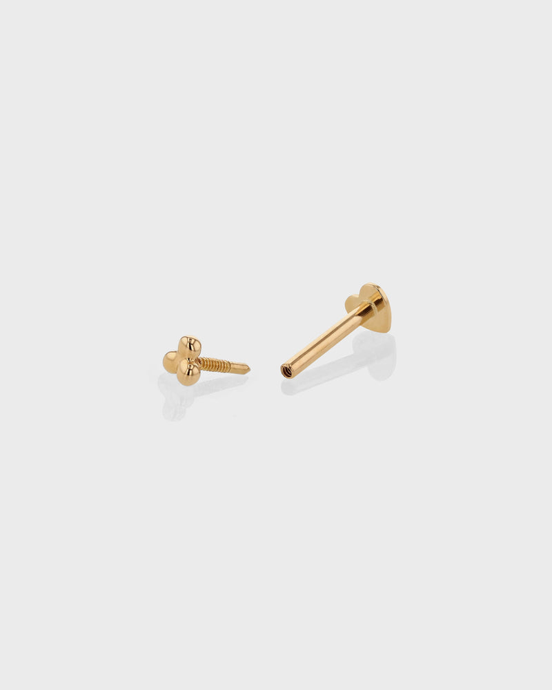 A signature Sarah & Sebastian design, the Trinity Cartilage Earring in 18-karat gold is our riff on the everyday stud, featuring three tiny circular balls that form an ornate triangle formation. Designed for the cartilage, this single stud can be worn anywhere in the ear from the helix to the conch.